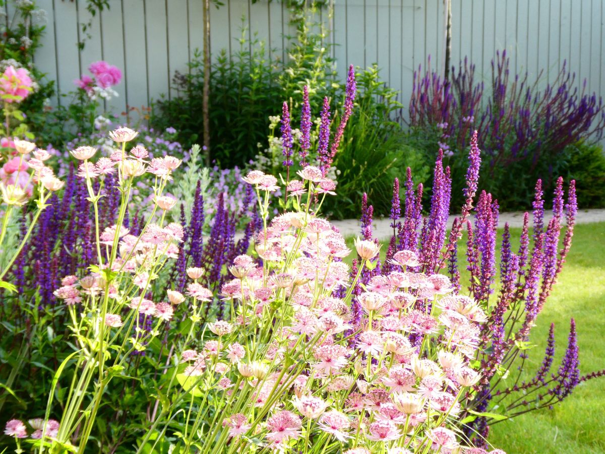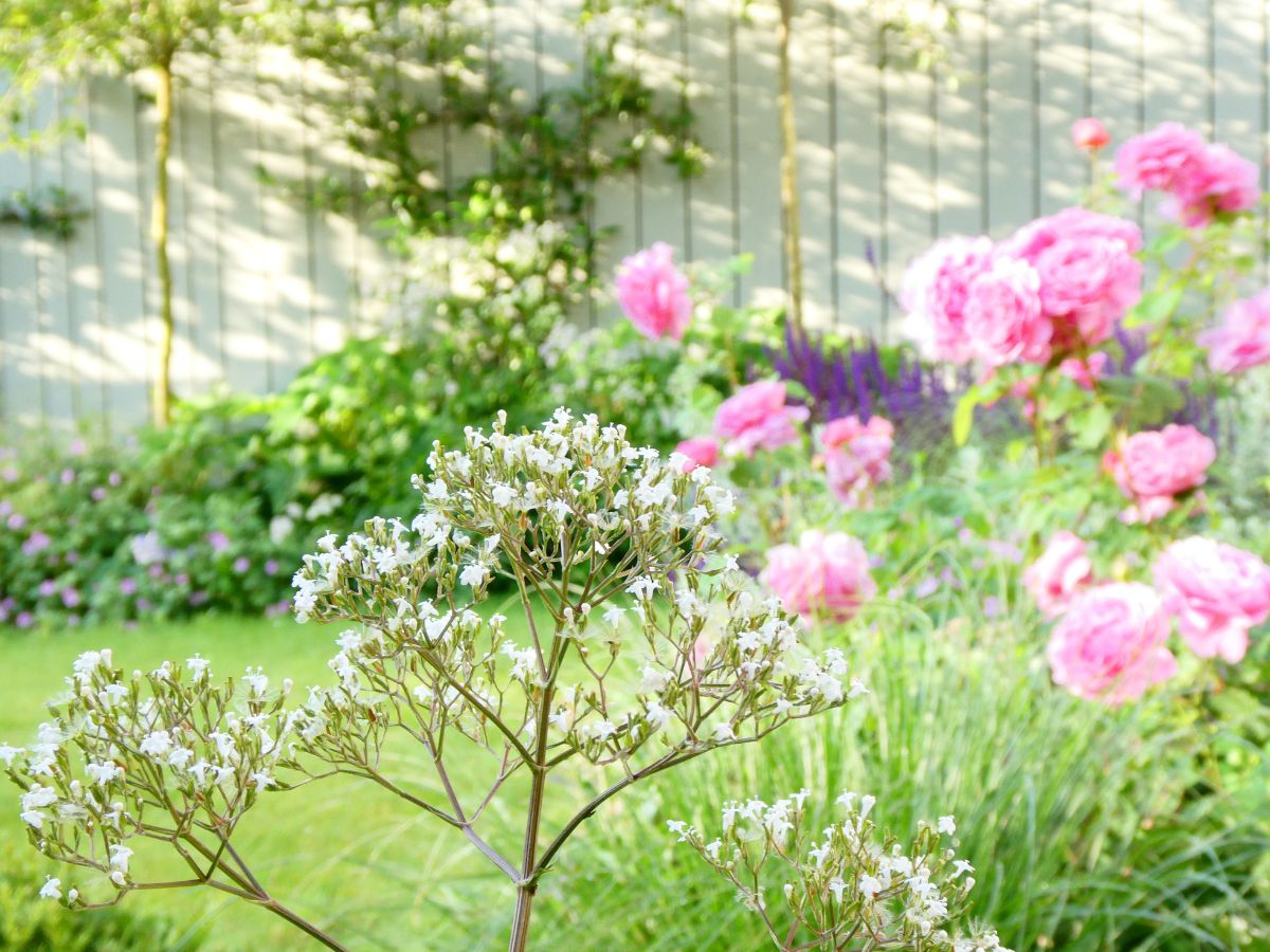 Delicacy and romance were the design keywords. The beguilingly simple plan creates a framework for ornamental planting. The axial geometry of the paths, laid with clay pavers, is softened by the diagonal sight line from the terrace towards the eye-catching, bespoke ornamental gate. The cottage colour palette of blues and pinks, fading into paler tints and whites towards the rear of the garden, visually enlarges the space.