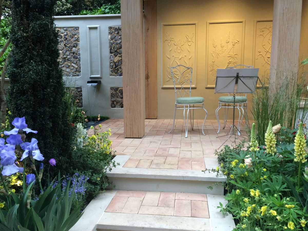 “A Suffolk Retreat” was inspired by the work of the Pro Corda Trust. Founded in 1969, Pro Corda is a Suffolk-based musical and educational charity that provides ensemble training across the UK for talented young musicians and children with special educational needs. This small, artisan garden created a secluded space where children and young people could engage with music.