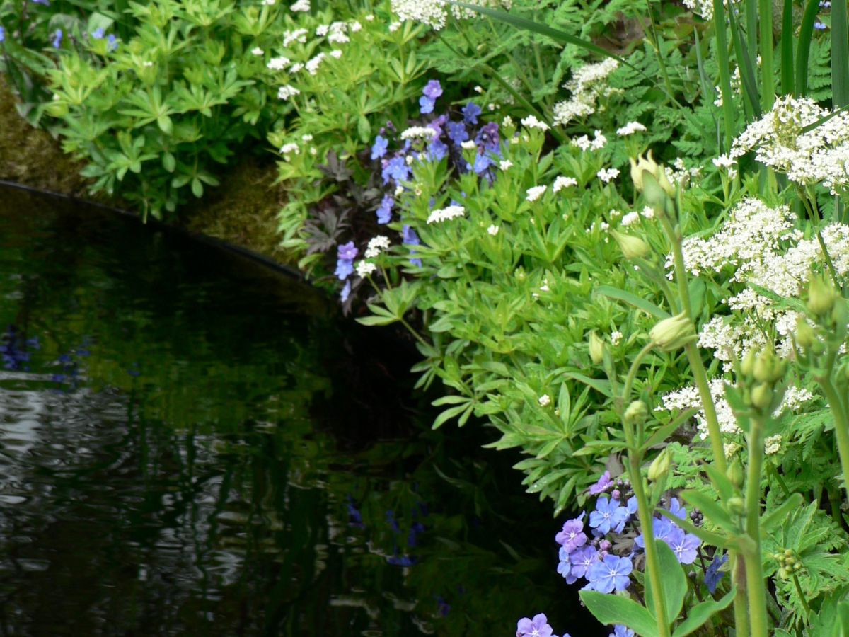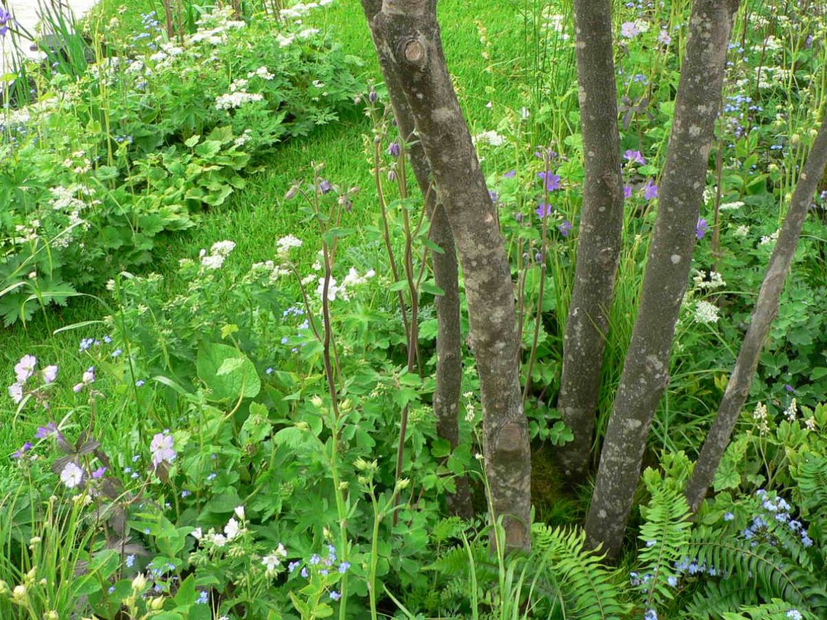 The garden took inspiration from the land art movement and harmonies seen in nature. It showed how land art can be used in small garden spaces and demonstrated that innovative garden structure can be achieved without relying heavily on hard landscaping materials. The naturalistic flowering tapestry of fresh greens and creamy whites, with accents of blue was conceived to evoke the calming, yet energizing atmosphere of an early summer woodland glade.